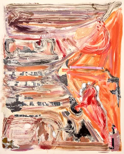 These works are monotype (one of a kind) prints combined with collage and transfer print.
