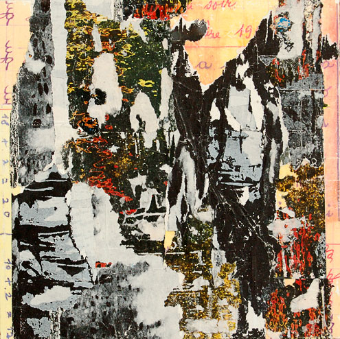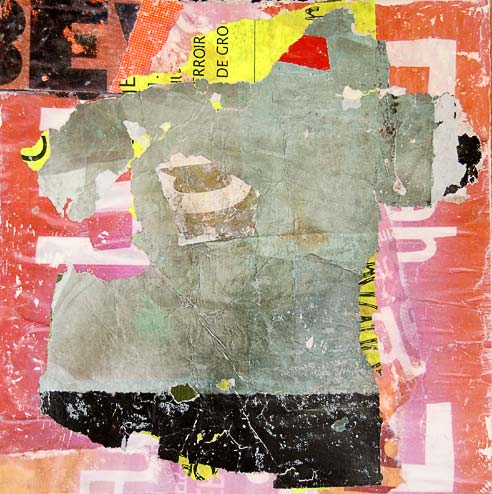 These works use the transfer print method in a 12" x 12" and 16" x 16" format, all on BFK Rives paper. In these pieces, there are text fragments and these usually give each piece its title.